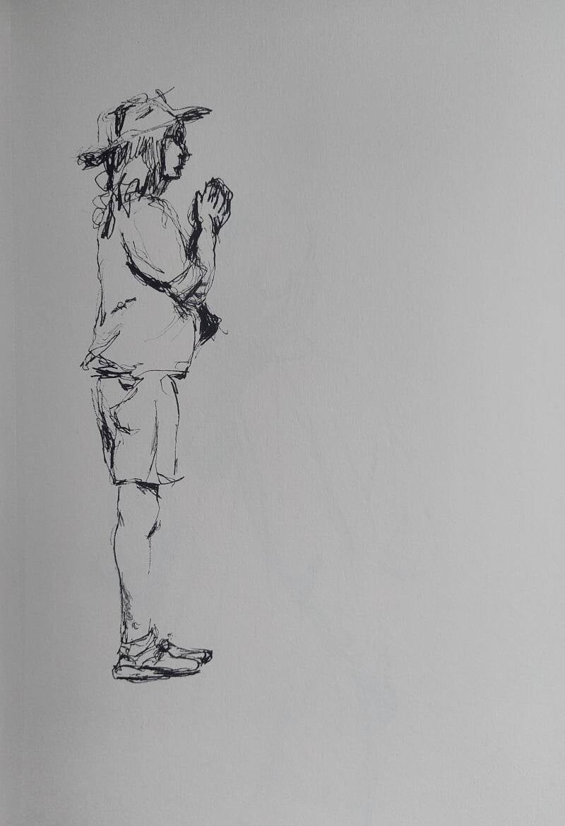 De achtergrond is even belangrijk getekend als het onderwerp. Dit lukte omdat ze deze 'energie' ook is. Dit geeft contact.
